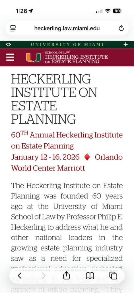 University of Miami 60th Annual Heckerling Institute on Estate Planning Conference Attendee